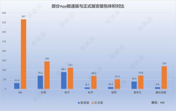 上述极速版的安装包体积,相比普通版有明显缩小,也被视作大厂们推动App轻量化的一种尝试。