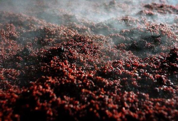 酿酒过程中蒸过的高粱正在摊凉