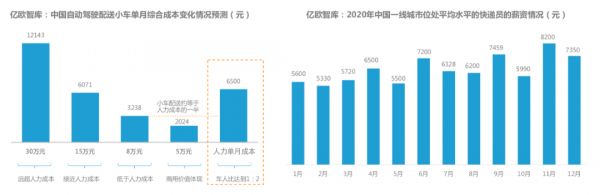 而如果根据其使用寿命与运营成本综合核算,目前无人配送车单月运营成本超过了1.2万元,远超平均6500元的人工配送成本,而只有当其硬件成本显著下降至5-8万元后,商业价值才会显著体现。