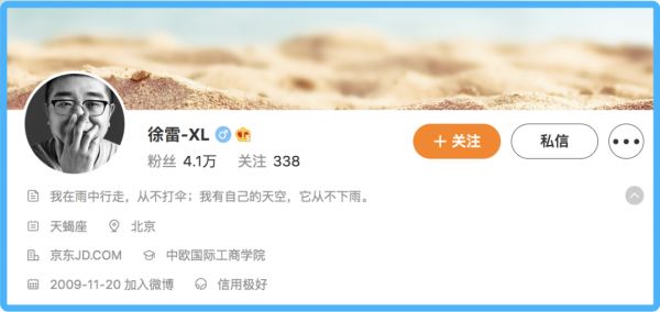 不过,按照徐雷一贯的处事风格,他或许还并不那么着急,一如其在微博上的签名: