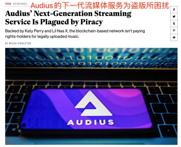 上文中提到的Web3音乐平台Audius,创办至今多次因为盗版问题严重而遭到抨击,对此,Audius方面辩称,其平台全靠节点自治,自己并不存储内容,无法识别和删除侵权内容,也无法制约侵权行为。