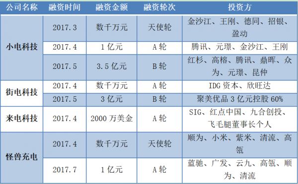 随着2016年共享充电宝概念横空出世,资本的热钱迅速烧出了共享充电宝市场的沸腾:怪兽充电、来电、小电等共享充电宝企业先后融资。消费电子的速生速死在这一赛道上体现得淋漓尽致,2017年,共享充电宝行业创下了10天融3亿、40天融12亿的融资神话。