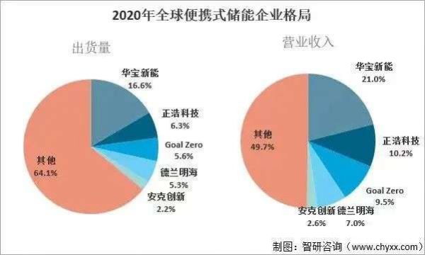 目前,根据中国化学与物理电源行业协会数据显示,以市占率来看,市面上主要的玩家前五位分别是华宝新能源、正浩科技(ecoflow)、goal zero、德兰明海和安克创新。其中,华宝新能源以市占率16.6%一骑绝尘排在第一位,之后是正浩科技占据了6.3%,再次是goal zero占据5.6%。