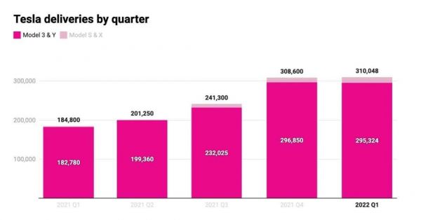 虽然特斯拉此次的表现超出了预期,但其仍然面临着供应链短缺的挑战。在汽车实际交付量上,特斯拉本季度交付了 295324 辆 Model 3 和 Model Y,以及 14724 辆Model S 和 Model X。总体交付量相较于2021 年第一季度的出货量同比增长 68%,但跟上一季度相比只是略有增加,勉强持平。