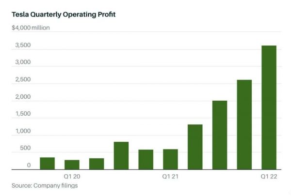 特斯拉的季度利润增长情况,图片来自《巴伦周刊》