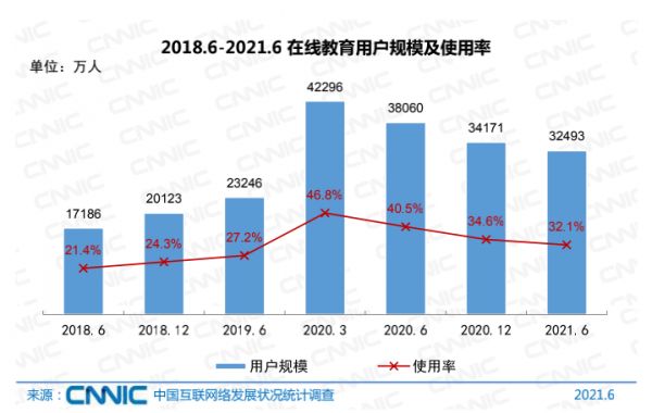 据艾瑞咨询数据,2020年,中国在线教育行业市场规模同比增长35.5%至2573亿元,过去4年的复合年增长率达34.5%。2020年3月,在线教育用户规模达到4.23亿的高峰。