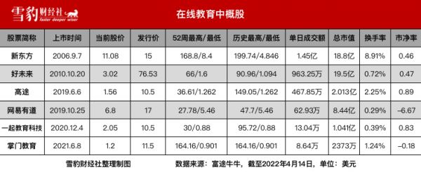 在美股上市的新东方、好未来、高途、有道、掌门教育等先后宣布,于当年底前停止各自旗下K-9(幼儿园至九年级)学科类培训服务。随后,提供高中教育的部分机构又宣布于2022年2月底前停止K-12(幼儿园至高中教育)学科类培训服务。