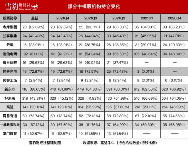 其中,元生资本增持掌门教育310.44万股,持股比例增加9.36%至15.75%;英国风险投资公司Glade Brook Capital Partners LLC建仓每日优鲜,持股比例1.16%。同期,在23家机构集中减持的情况下,摩根士丹利逆势增持高途658.25万股,持股比例增加1.48%至2.57%。