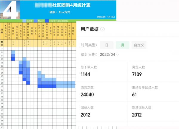 而后续促使她继续组织大家团购的契机,是因为她此前加入了小区周边的商家折扣群,封控期间看到很多商家都在群里发布产品预定链接,但要小区单独成团之后才肯配送,彼时她在的小区没有人组织,很多同小区的人都在群里乱跟团,最后没能购买成功,于是她把大家聚到了一起,承担起需求统计和对接供应商的工作,成为了一名团长。