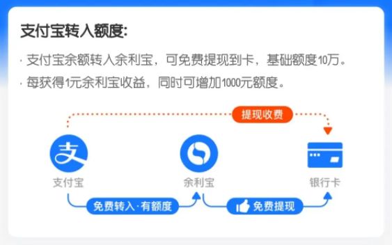 基础额度为 10 万元,每获得 1 元余利宝收益,还能可增加 1000 元额度。