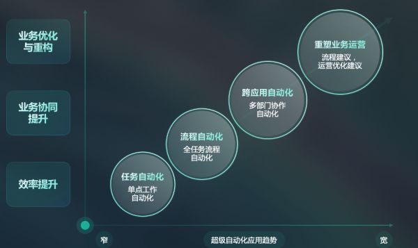 当前,RPA赛道在全球经历近十年发展,行业已经度过了萌芽阶段。其概念也逐步深化,从原生的RPA、IPA(AI+RPA),走到超自动化、更广泛的低代码iPaaS等,解决方案也形成不同流派。据Gartner,截止2022年,超级自动化相关的各类技术在全球市场规模已达6000亿美元。