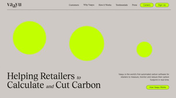 「Vaayu」能将POS连接到商店平台,实时监控品牌方零售业务的具体细节,帮助品牌方管理碳足迹。该公司称目前已覆盖超过60万个数据点,其数据库能够计算所有日常交易引起的碳足迹。