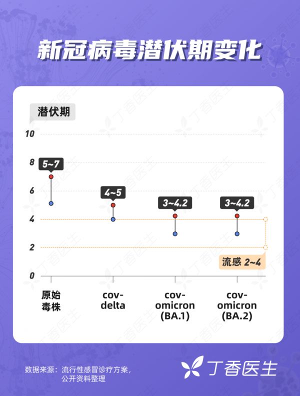 同时我们也可以看到,从原始毒株到奥密克戎,潜伏期也在不断缩短。
