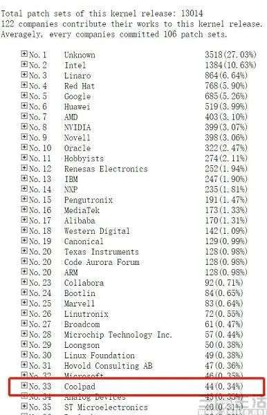 除了腾讯有相关经验外,酷派方面其实对于操作系统内核也同样很有研究。事实上,酷派可能是国内手机厂商中对于Linux的重视仅次于华为的存在。在Linux kernel社区的核心分支代码贡献榜上,酷派在全球范围内位列第33,仅次于排名第6的华为。甚至在2020年时,酷派员工虎跃向Linux社区还提交了数条高质量补丁,还吸引了Linux之父Linus Benedict Torvalds亲自向其了解他个人及酷派的状况。