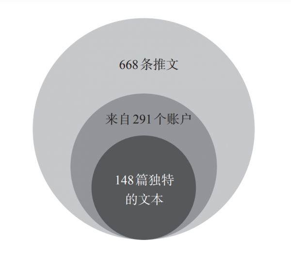 这是一篇关于利用推特数据研究公众参与撰写科学论文的科学论 文中的配图,看起来像是韦恩图,但实际上相互嵌套的椭圆只是3个数字和5个单词的装饰背景,看不出来它要表达什么。