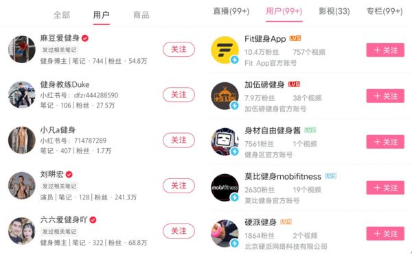 (小红书和B站上的健身博主)