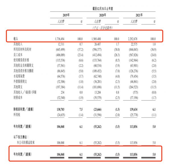 这让人不禁疑问,绿茶赚的钱都去哪了?再次剖析招股书,我们得知,2021年度里,绿茶餐厅所用原材料成本就有8.5亿元,占比36.9%,员工成本5.7亿元,占比24.8%,租金相关成本3.2亿元,占比14.5%。三大核心成本占去收入的76.2%,并且近年来居高不下。