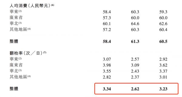 绿茶人均消费及翻台率