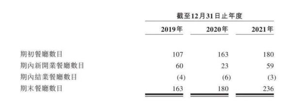 从近三年的财务数据来看,绿茶新开的门店中,多数亏损。截止,2021年底,绿茶拥有236家餐厅。在餐饮环境较差的情况下,绿茶2021年还是新开了59家餐厅,但2021年度亏损餐厅数量有44家,其中多数为新开餐厅。
