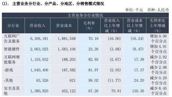 四大主营业务中,只有安全及其他业务的营收同比增长了70.91%,其他三项互联网广告及服务、智能硬件业务、互联网增值服务的收入都有所下降。