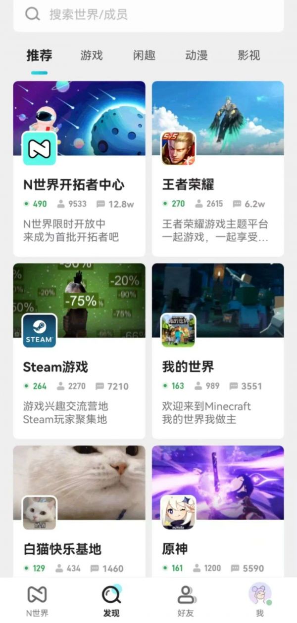 就目前用户体验与玩法来看,“N世界”类似于国外拥有超过1.5亿的月活跃用户的语音聊天软件discord,最关键的是用户活动中体现出的社群属性。