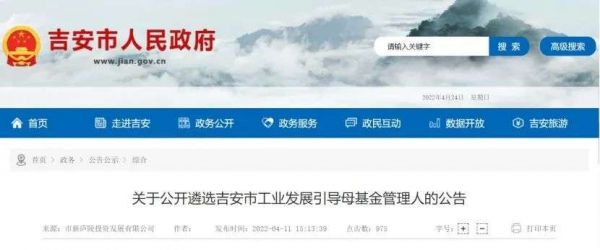 根据《吉安市人民政府办公室关于印发吉安市工业发展引导基金实施方案的通知》,吉安市新庐陵投资发展有限公司(以下简称:新庐陵公司)履行市级财政的出资代表和市引导基金的投融资执行主体职责,向社会公开遴选我市工业发展引导母基金管理人。