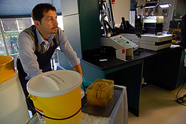 2009 年 2 月 12 日,加州大学圣地亚哥分校,伴随着披头士的背景音乐,科金的一名合作伙伴——雅各布·安内瑟(Jacopo Annese)——用 切片机将亨利的大脑切成 70 微米厚的薄片,共 2401 片。切片过程全程网络直播,时长超过 53 个小时。