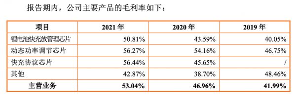 2019-2021年智融科技的主要产品毛利率