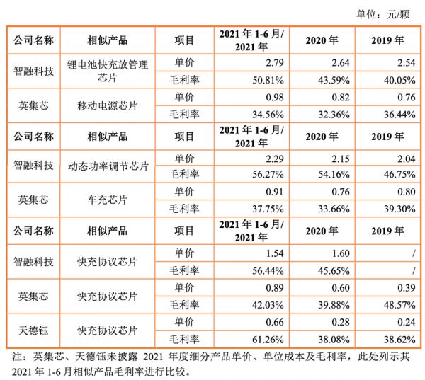 公司解释,这一差距主要是由于细分产品结构,如芯片的集成度、输出功率和单双口等指标差异所致。报告期内,面对供应链紧缺的晶圆产能,智融科技将产能资源主要集中在高集成度、高功率和“多口”、 “快充”产品,使得产品单价和毛利率较高,但营收规模低于销售相似功能产品的英集芯,“具有合理性,不存在异常情形。”
