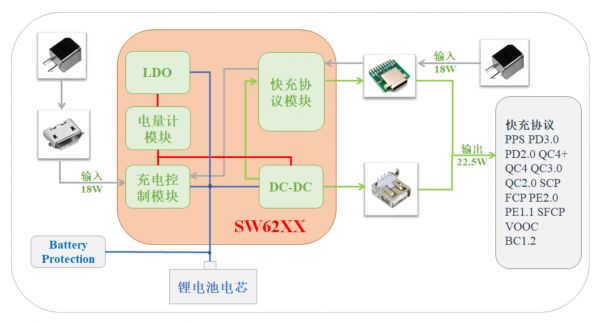 智融科技的锂电池快充放管理芯片的代表性产品“SW62XX”系列设计方案