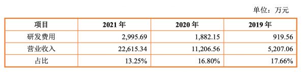 2019-2021年智融科技的研发费用及占比