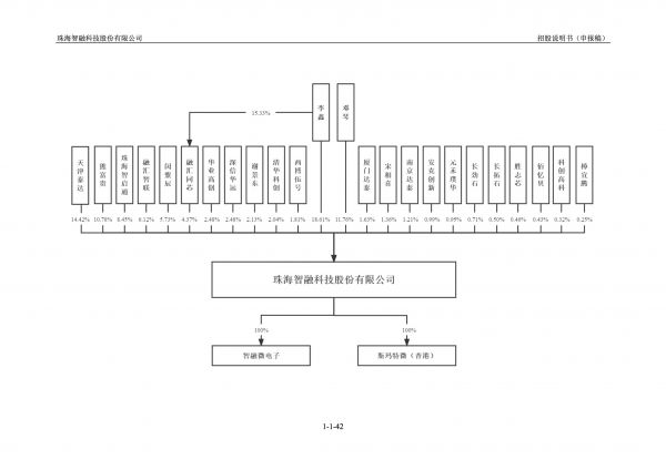 李鑫和邓琴为智融科技共同控股股东及实际控制人,两人分别直接持有公司18.61%、11.76%股权,其中融汇同芯直接持有公司4.37%股权,李鑫担任融汇同芯执行事务合伙人,并持有融汇同芯15.33%份额。因此,李鑫和邓琴实际共同控制智融科技34.74%的股权。