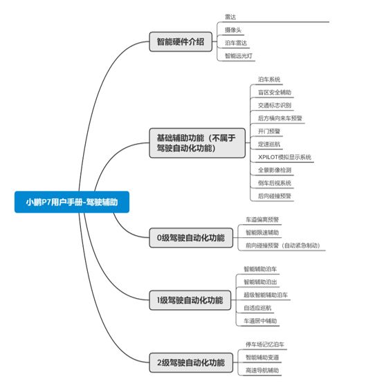 那么,此次事故中的涉事车型小鹏P7的“自动化”功能都是什么水平呢?笔者查阅了小鹏P7的用户手册,在驾驶辅助的目录下查询到了25个科目,并根据最新的驾驶自动化分级,将这25个科目进行了分类。