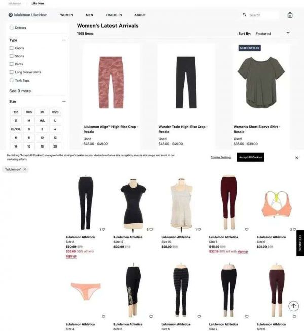 ▲上下分别为lululemon官网和ThredUp的产品页面。