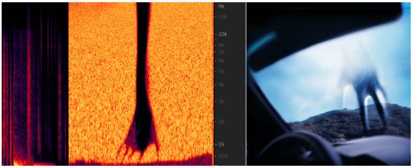 音乐的频谱图里藏着的手(左),和专辑封面上的那只凭空出现的手(右)如出一辙。