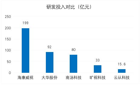 云从科技的研发总规模虽然超出了自己的正常水平,但与国内龙头企业相比,显得不值一提。