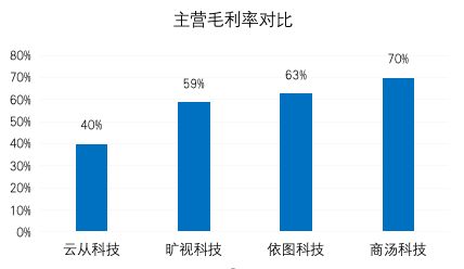 云从科技主营毛利率低原因是公司占大头的产品“人工智能解决方案”毛利率相对不高,三年平均下来只有27.65%,而该产品在公司主营业务收入占比却高达77.43%,拉低了公司整体产品的毛利率。