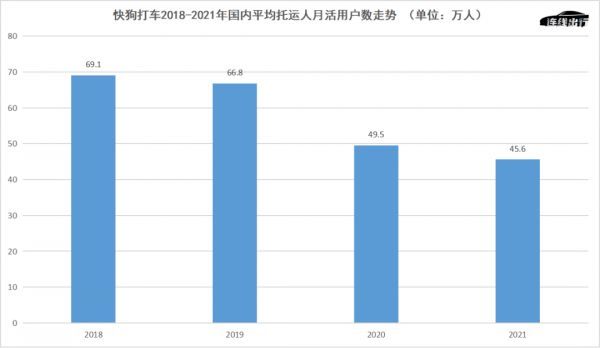 招股书显示,2018-2021年快狗打车国内平均托运人月活用户数分别为69.1万人、66.8万人、49.5万人和45.6万人,可见其月活是处于逐年下滑的趋势中,并未实现月活的增长。