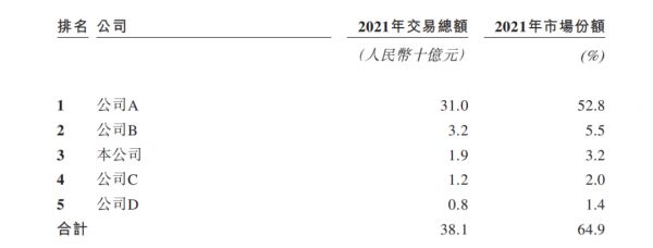 招股书中,快狗打车这样描述道“若按2021年交易总额计,其是国内第三大线上同城物流平台,市场份额为3.2%(排名于市场份额为52.8%和5.5%的参与者之后)。”