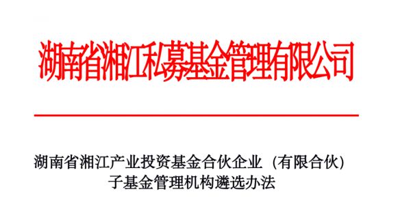 投资界-解码LP获悉,近日,湖南省湘江私募基金管理有限公司(简称:湖南湘江)发布子基金管理机构遴选公告,面向市场遴选湖南省湘江产业投资基金合伙企业(有限合伙)(简称:湘江基金)的子基金管理人。