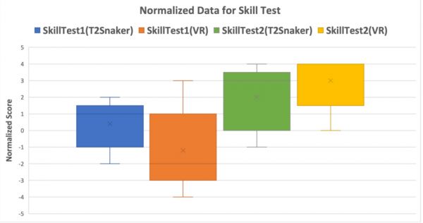 对收集到的数据进行标准化后显示,使用T2Snaker的志愿者对技能测试的总体技能增益更高。