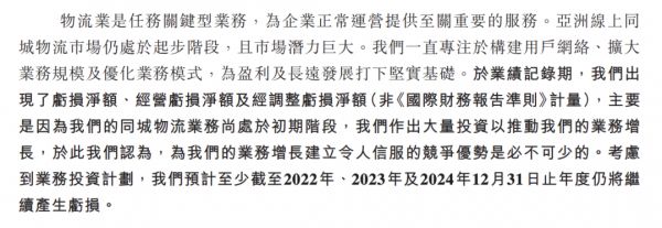 快狗打车解释这是由于其同城物流业务尚处于起步阶段,公司需要通过大量的资金投资以推动业务增长。