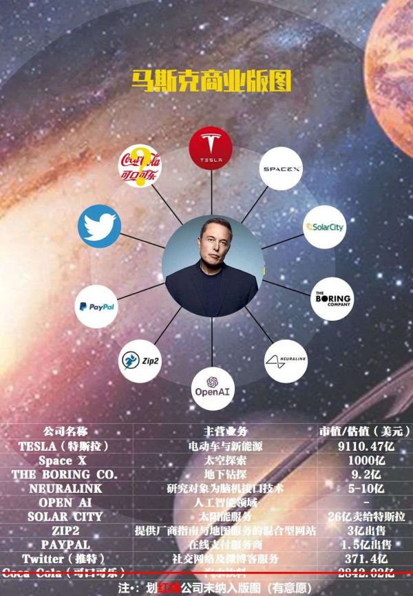 马斯克商业版图 制图:车市物语
