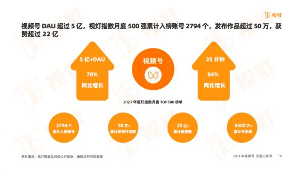 在2021年Q4财报的电话会中提到,视频号在新闻、音乐和知识类内容等目标内容类别上取得了重大突破。超过10万+个赞的视频数量强劲增长,用户参与度加深。