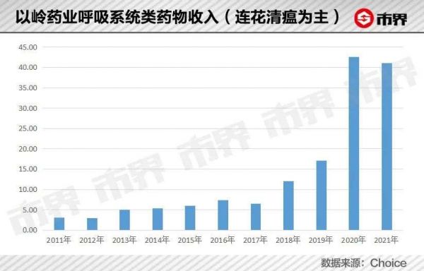 根据2021年最新财报数据,以连花清瘟为主的呼吸系统类产品为以岭药业贡献了41亿元的营收,在整体营收中的占比也从疫情前2019年的29.23%跃至40.6%。
