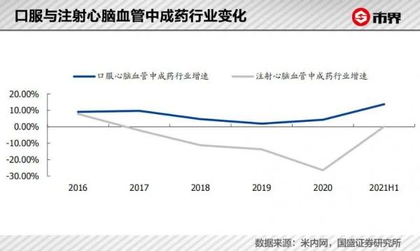 以岭药业加大研发背后是因为占据其营收大头的心脑血管疾病中成药市场规模及增速放缓,据米内网,2015年-2017年,公立医院终端心脑血管中成药市场规模由1002元增至1112亿元,随后下降至2019年的991亿元。其中2017年后心脑血管中成药行业增速下滑,主要是中药注射剂的影响。