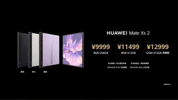 Mate Xs 2的起售价刷新了Mate系列折叠屏记录,第一次将价格下探至万元以下。售价方面,8GB+256GB售价9999元;8GB+512GB售价11499元;12GB+512GB典藏版售价12999元。