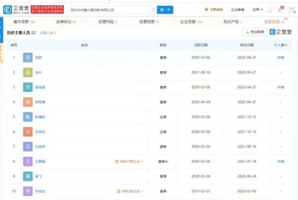 企查查最新数据显示,最新一轮增资前,李冠超、胡顺香、田硕等四人于4月27日卸任中融小贷董事职位,丁博寻总经理、执行董事职位不变。