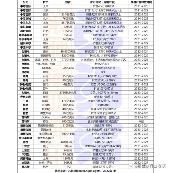 芯片制造商疯狂扩张,为上游的硅片和设备市场带来强大需求量,引起硅片和设备行业销售额增加、产能扩张。