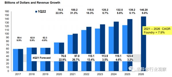 2017-2026晶圆代工行业收入预期 (图源:Gartner)